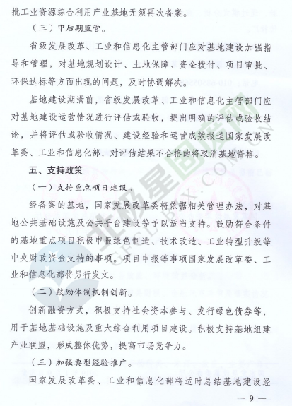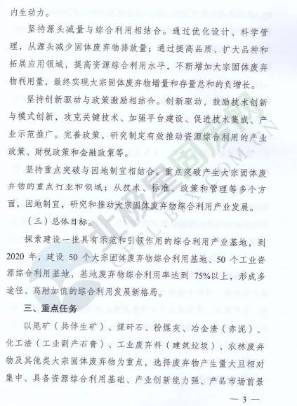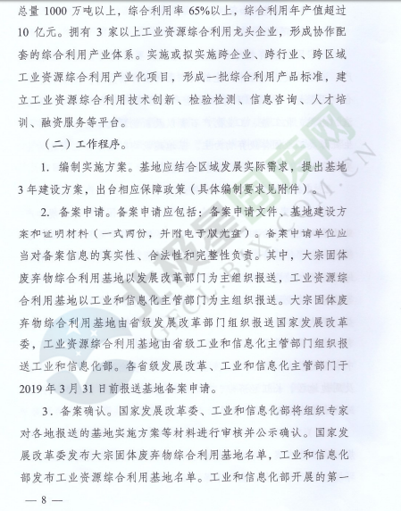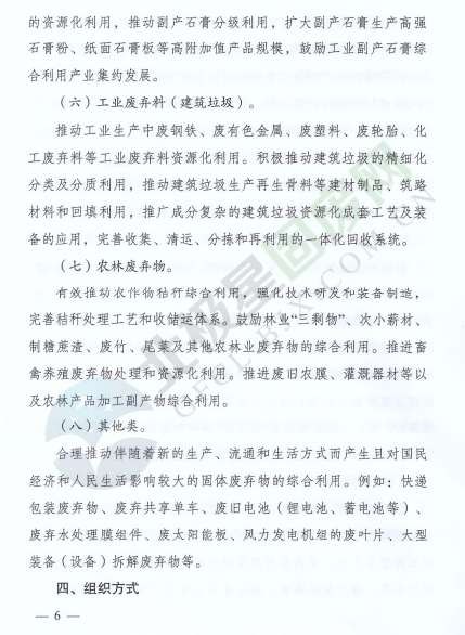 為落實《中華人民共和國經(jīng)濟和社會發(fā)展第十三個五年規(guī)劃綱要》《循環(huán)發(fā)展引領計劃》和《工業(yè)綠色發(fā)展規(guī)劃》,促進產(chǎn)業(yè)集聚,提高資源綜合利用水平,推動資源綜合利用產(chǎn)業(yè)高質(zhì)量發(fā)展,近日,國家發(fā)展改革委辦公廳和工業(yè)和信息化部辦公廳印發(fā)了關于推進大宗固體廢棄物綜合利用產(chǎn)業(yè)集聚發(fā)展的通知。全文如下: